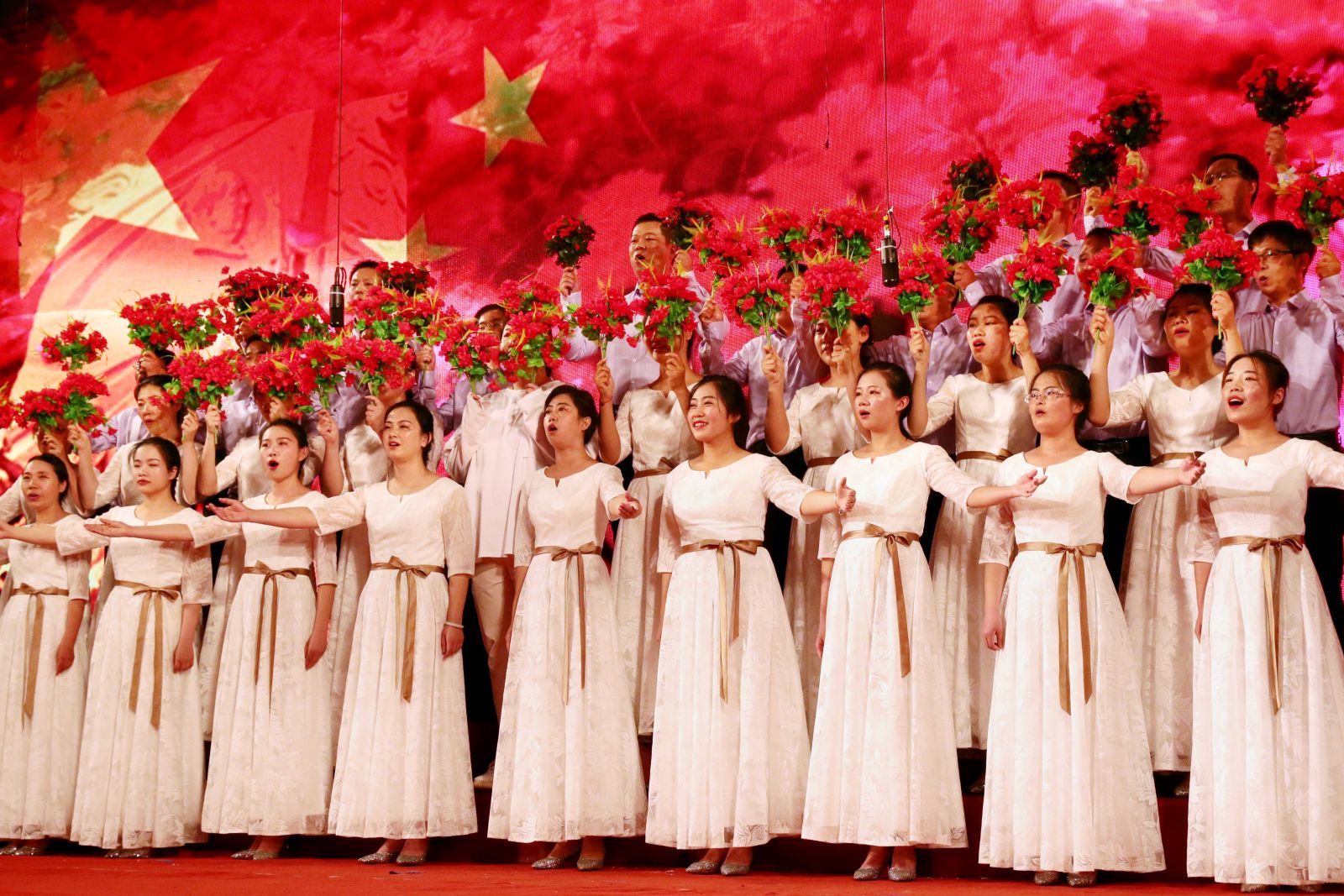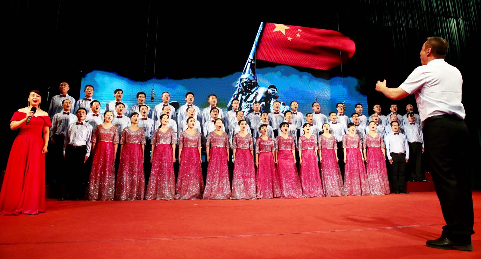 比賽中,各只隊伍都運(yùn)用了多種合唱技巧,既唱出了生在新中國的自豪與榮耀,又唱出了建功新時代的豪邁氣概。比賽精彩連連,高潮疊起,呈現(xiàn)出較高的藝術(shù)水準(zhǔn),贏得了觀眾熱烈的掌聲和陣陣喝彩。比賽最后,全場干部職工高舉國旗,齊聲合唱《大中國》,再一次將現(xiàn)場氣氛推向高潮。