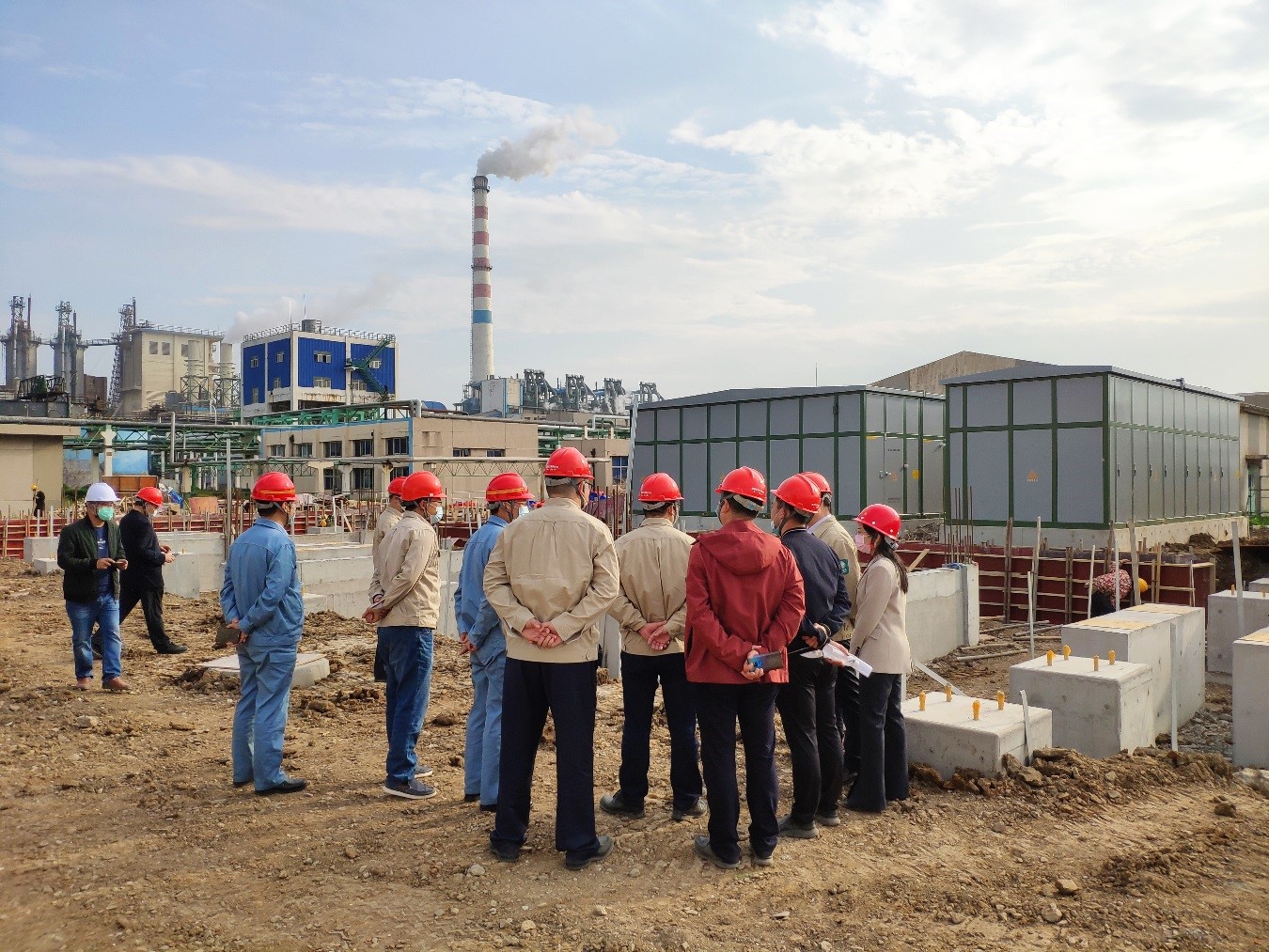 程真何一行人員在堿業(yè)公司董事長(zhǎng)張衛(wèi)民的帶領(lǐng)下實(shí)地考察了外電網(wǎng)系統(tǒng)供電增容改造施工狀況,并就施工質(zhì)量和進(jìn)度提出了意見(jiàn)和建議。