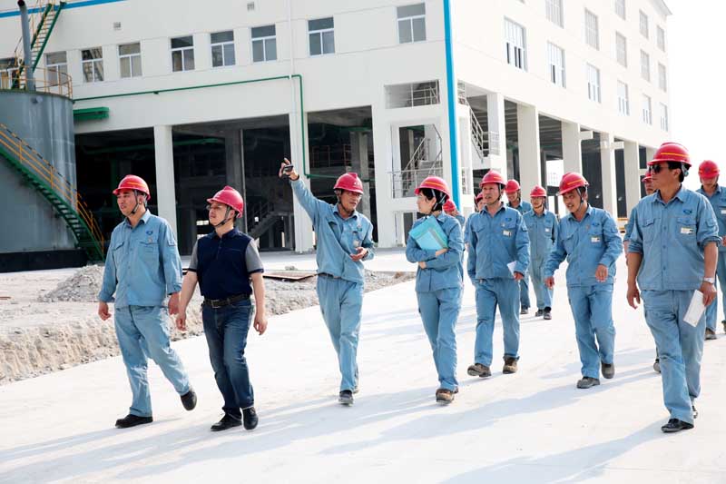 會后,車間領(lǐng)導(dǎo)親自陪同與會人員參觀了新的壓濾機廠房。